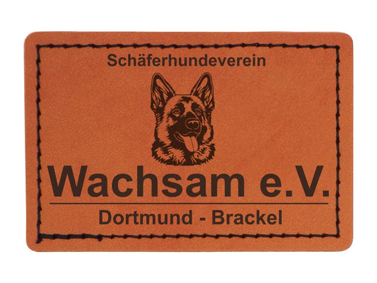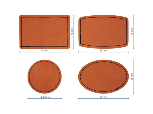 Kunstlederpatch Form 1, mit echter Naht, zum Heißkleben, ideal für Taschen, Jacken, Mützen, Schultaschen etc., dauerhafte Lasergravur möglich